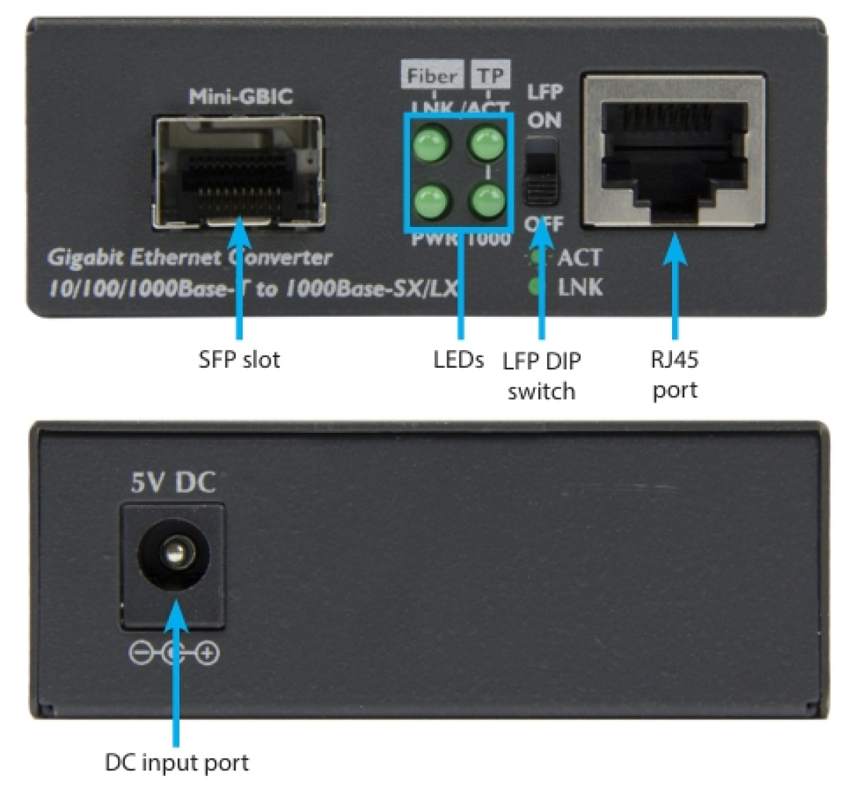 Se il link in rame sul lato A (la porta RJ45) va giù, il Media Converter A forza immediatamente lo spegnimento anche del suo link in fibra adiacente.