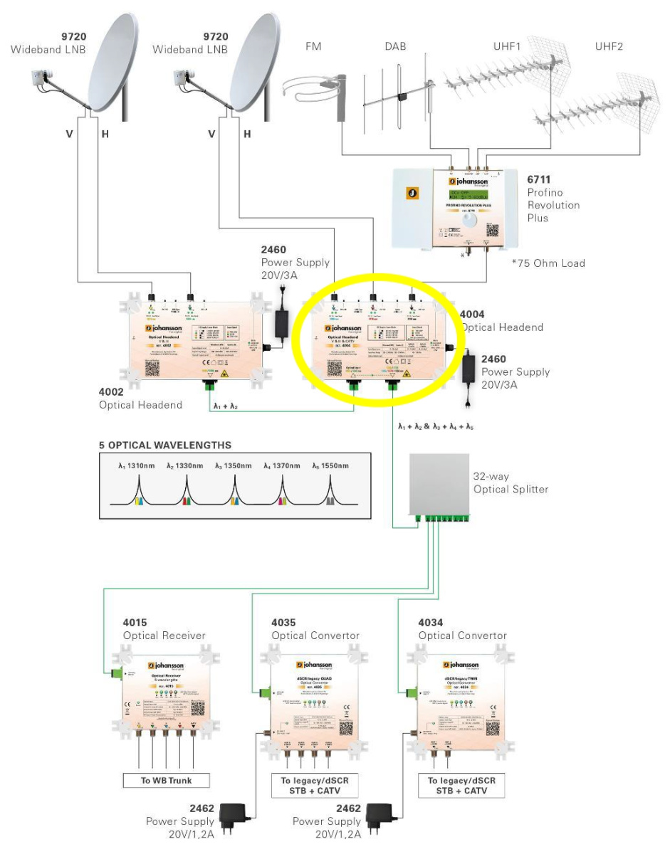 ✅ 1 Uscita ottica SC / APC serve per combinare da altre sorgenti ottiche, convertire e distribuire tutti i segnali SAT e TV in fibra ottica.