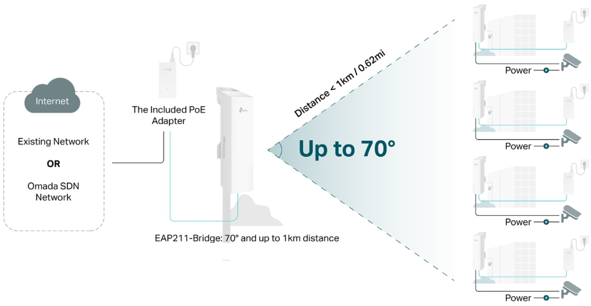 Supporta il collegamento diretto » punto- punto « per una distanza di connessione che arriva ad 1 km.
