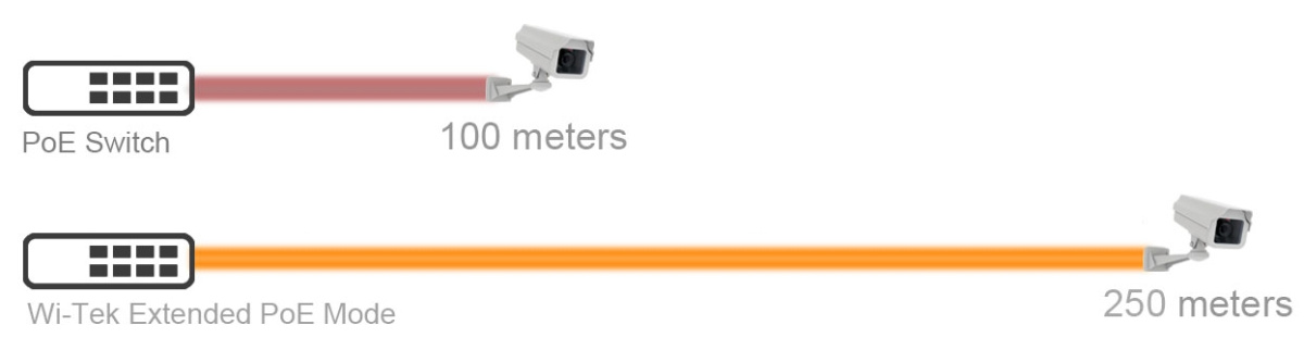 ✅ Long Range Modalità Extend ideale per installare telecamere IP in punti lontani.Quando attivata, riduce la velocità delle porte 1-4 a 10 Mbps ma estende la distanza massima di trasmissione del segnale delle telecamere e dell'alimentazione fino a 250 metri tramite il cavo di rete. Per una telecamera IP, sono solitamente più che sufficienti in quanto le telecamere con compressione H.265 Full HD (2MP/5MP) consumano circa 4-6 Mbps. quelle 4K (8MP) consumano circa 8 Mbps. Quindi, anche a 250 metri, una singola telecamera continuerà a trasmettere immagini fluide.