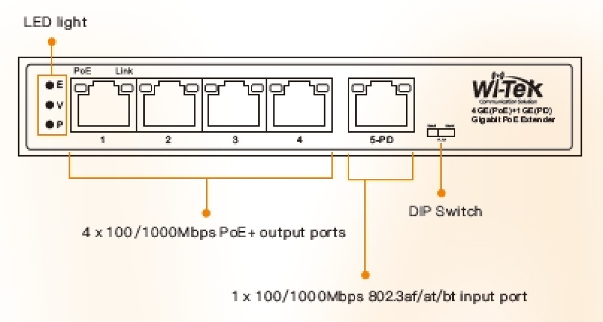 Espandi la tua rete PoE senza prese elettriche. Il WI-PE51G è estensore PoE Gigabit a 4 porte ethernet che si auto-alimenta dal cavo LAN,Riceve i dati e la corrente dallo Switch PoE principale per aumentare la distanza di collegamento della rete senza prese di corrente.