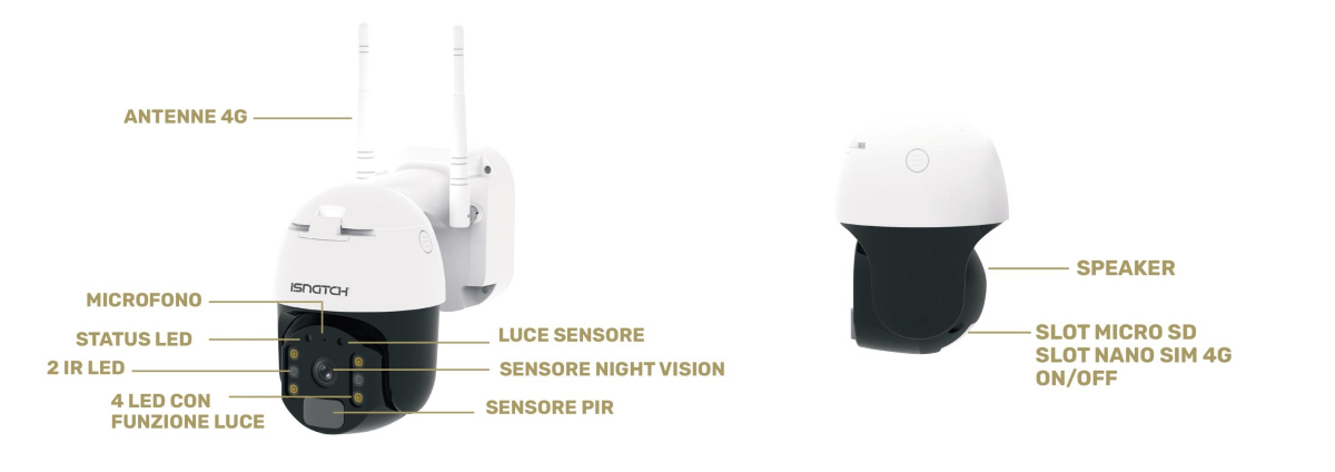 Dotata di risoluzione video full hd ,ottica da 3.6 mm,Visione notturna a colori o infrarossi grazie ai LED bianchi e IR. audio bidirezionale con Speaker + Microfono incorporati, potrai sentire e parlare attraveso la telecamera. Le registrazioni possono essere salvate su memoria SD ( max 64gb opzionale) oppure tramite il servizio Cloud a pagamento.Applica un sensore di movimento con avvisi istantanei e video verifica direttamente sullo smartphone tramite l'App HeySmart che permette la visualizzazione in tempo reale, catturare foto, ed esporta i video registrati presenti nella memoria.