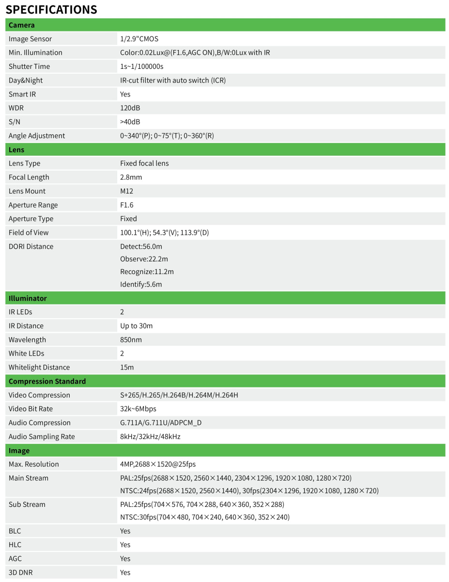 ✅ Sensore 1/2.9" CMOS da 4.0 MEGAPIXEL 2688x1520 25fps
