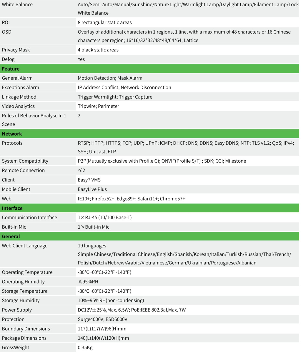 La Telecamera Turret IP Tiandy TC-C34XN offre video ad alta risoluzione a 4 Megapixel per immagini dettagliate, è dotata di struttura impermeabile, completa di microfono e sensore immagine 1/2.9" CMOS che abbianta ad un obiettivo fisso da 2.8mm offre un ampio angolo di visione, completa inoltre di LED IR e Luce Bianca per una visione notturna anche a colori.