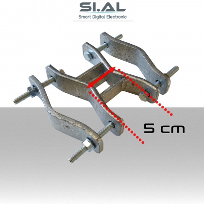 Cavallotto a otto pesante con distanziale da 5,0 cm per fissaggio pali in parallelo anche di grosse dimensioni ø 40/102